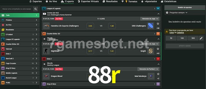 A aposta 88r oferece aos jogadores a experiência mais conveniente de apostas em eSports!
